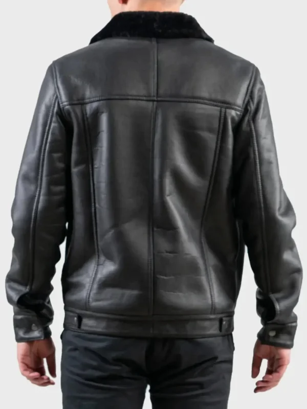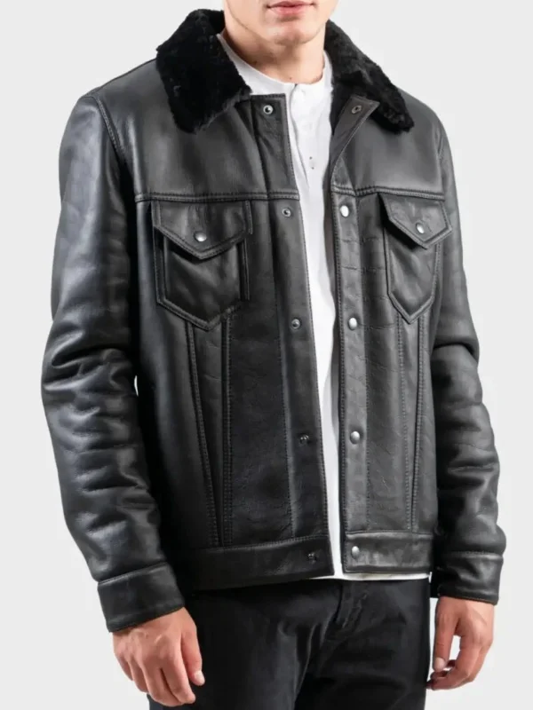 Men’s Black Leather Shearling Trucker Jacket