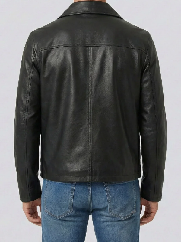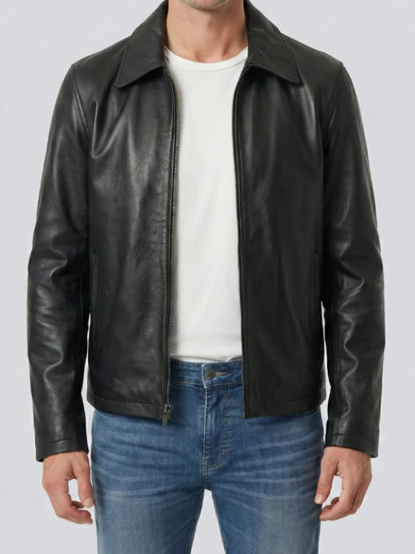 Men’s Black Shirt Collar Cowhide Leather Jacket
