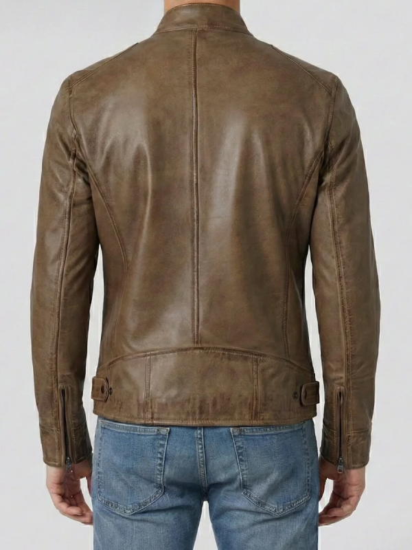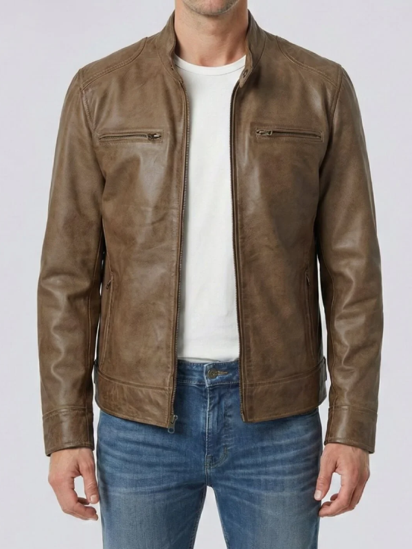 Men’s Camel Brown Leather Cafe Racer Jacket