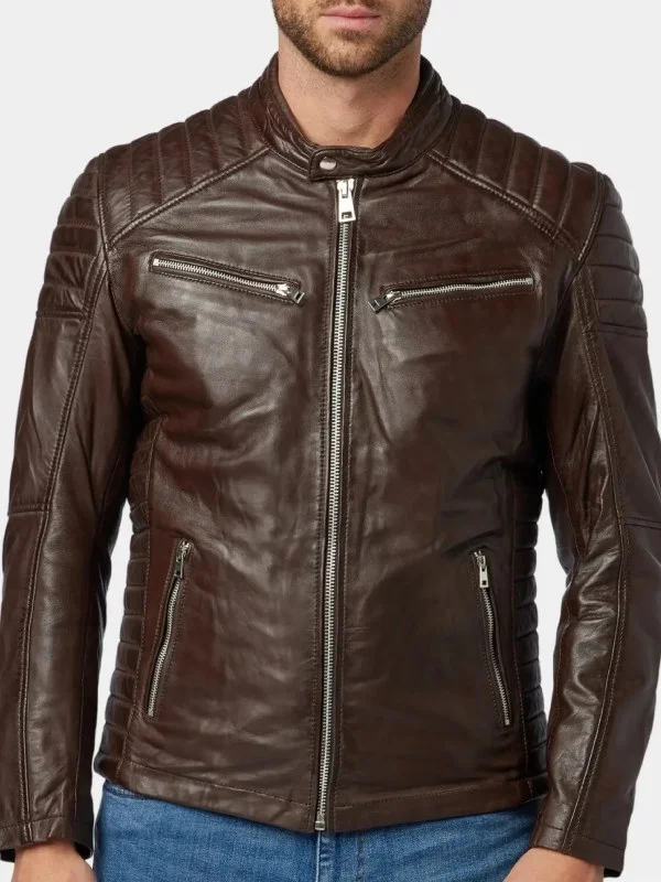 Men’s Dark Brown Leather Cafe Racer Jacket