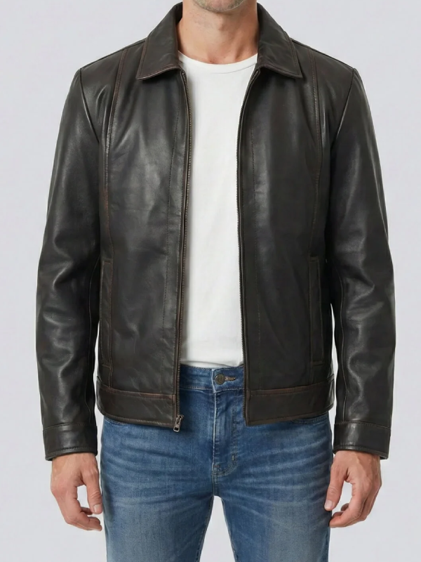 Men’s Distressed Dark Brown Biker Leather Jacket