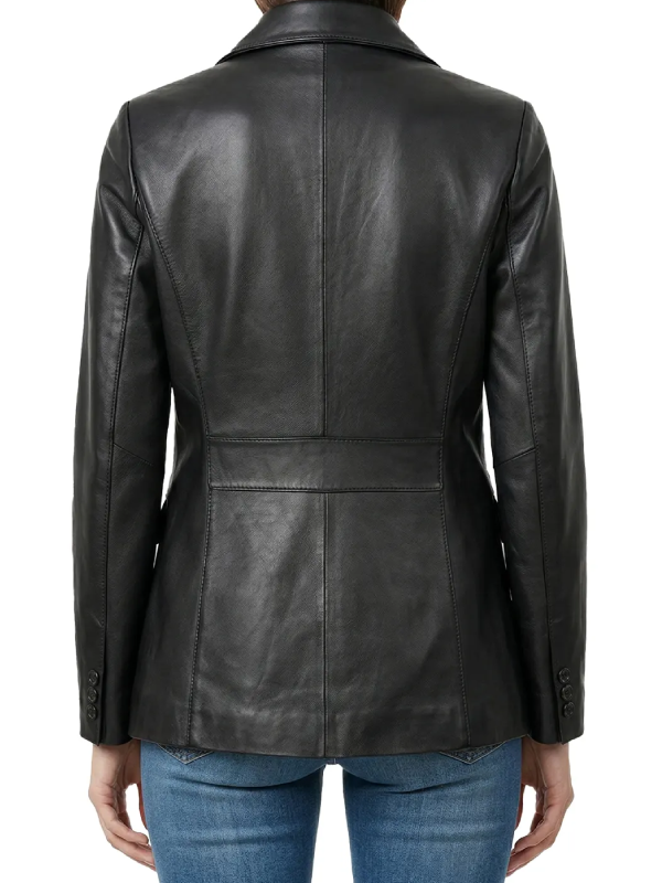 Two Button Real Leather Black Blazer For Women